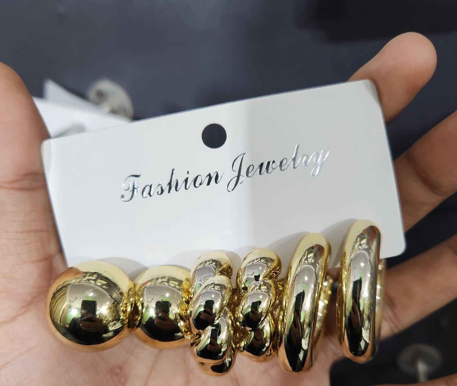 Elevate your accessory collection with this set of 3 pairs of gold chunky earrings, thoughtfully curated on a combo card. Each pair features bold, contemporary designs that add a statement touch to any outfit. Crafted to offer both style and versatility, these earrings are perfect for enhancing your everyday look or complementing special occasions with a sophisticated edge.